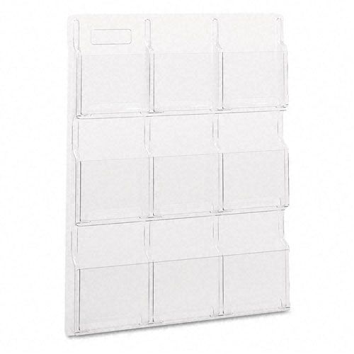 Safco - Magazine Racks - 5603CL - Think outside the box by looking in! Reveal design displays literature clearly. Each pocket holds 1-3/4 of printed material. Thermoformed one-piece units have no sharp edges or corners. The displays are wall mountable with hardware included. Wire partition hangers fit all Reveal Displays. Optional Floor Stand (5619BL) Compartment Capacity: 1 3/4 printed material Compartment Quantity: 9 Compartment Size: 9 1/4w x 1 3/4d x 11 1/4h (magazine) Material Thickness: 2.25mm (PETG) Mounting Hardware: Included Material(s): PETG-Plastic GREENGUARD: Yes* Assembly Required: No Color: Clear Finished Product Dimensions: 30w x 2d x 36 3/4h Finished Product Weight: 11 lbs. * As an industry leader, Safco aims to set high environmental standards offering a large collection of GREENGUARD Indoor Air Quality Certified products and GREENGUARD Children and Schools Certified products. The GREENGUARD Certification Program is internationally recognized for evaluating product emissions and certifying building materials, furnishings, finishes, and cleaning products and processes that meet stringent indoor air quality criteria defined by GEI.