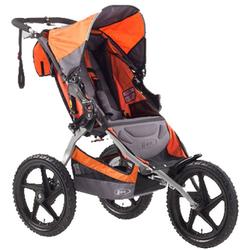 Shop for Carriages and Strollers from JustStrollers.com! In the spring, a runner's fancy lightly turns to thoughts of. getting away from the treadmill, and with the B.O.B. Sport Utility Single Stroller - Orange you can do just that. Don't bother getting someone to watch your child for you; with the smooth and comfortable ride of this sport utility stroller, your little one will be as anxious as you are to get out and enjoy the warm weather and fresh air. B.O.B. has designed this stroller to provide both you and your child with a comfortable ride whether on or off the road. The fixed front wheel keeps the stroller's forward motion steady so that not even slight play will slow you down. Coil spring and elastomer core shock absorbers provide three inches of wheel travel, and the adjustable release knobs ensure that your stroller will have just the right suspension you need as your child grows. When spring's thaw turns into summer's sunny heat wave, the adjustable canopy will keep your little one shielded from the elements so you still won't have to worry about their comfort or safety while you're out on the trail. When you're craving a new trail or want to hook up with a friend to have some company on your run, the stroller's easy, two-step folding and lightweight frame make storage and transport a cinch. Why feel boxed in, when you could instead expand your exercise horizons, getting yourself and your child out into fresh air and natural surroundings. Additional features: Fixed front wheel for increased stability State-of-the-art, adjustable suspension system Easy, two-step folding Ultra-padded, adjustable reclining seat Adjustable canopy with viewing window Padded handlebar High-impact polymer composite wheels are extra tough Knobby tires offer added traction to keep you moving1 Low Boy Cargo Basket, 1 large seatback pocket Internal seat pockets Parking brake, hand brake Tracking knob to keep stroller rolling straight Design specifications: Weight: 26lbs. Capacity: 70lbs. (occupant plus luggage weight)Padded 5-point harness Frame material: high-strength chromoly, aluminum Seat material: water-repellant coated weave fabric Open cell foam padding Pneumatic, knobby tires: 2W x 16H inches Pneumatic tubes with schrader valve Hub: quick release axle Sealed cartridge ball bearings High-impact polymer composite wheels and spokes Hand break, foot-activated parking break Wrist strap, seat retention strap Canopy: 5 position toggle, 125-degree range About B.O.B.In 1994, Roger Malinowski, a bicycle industry maven, met Philip Novotny, an airline mechanic, in San Luis Obispo, California. From the marriage of Novotny's ingenuity and Malinowski's industry knowhow came B.O.B, a world-renowned company with roots in developing revolutionary bicycle trailers such as the YAK. Once Malinowski and Novotny began raising families, they felt an urge to start applying the innovative principles they developed in bicycle trailers to strollers. They strived to build a superior product that would combine the best of a bunch of worlds: a lightweight, high-quality stroller that you could take running, hiking, and off-roading and that would still fold up easily and compactly. Like any sensible entrepreneurial parent, Malinowski and Novotny subjected their designs to rigorous analysis. by testing them on their own children. The result was their wildly successful Sport Utility Stroller. Then, through an endorsement by the famous Ironman triathlon endurance race as well as the addition of several more groundbreaking innovations such as a swiveling front wheel, B.O.B. has become one of the most visible, trusted names among athletic parents.