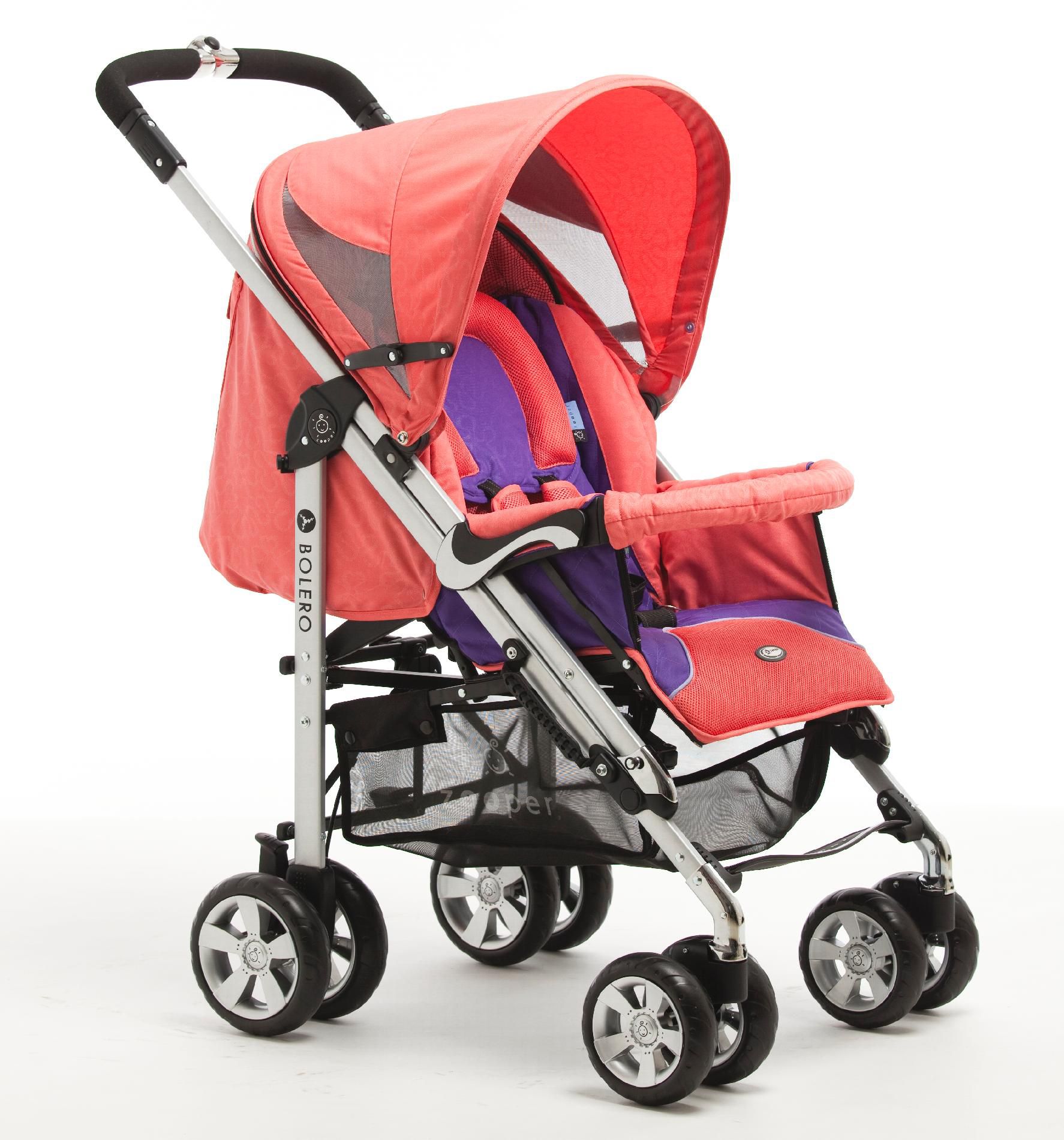 Shop for Carriages and Strollers from JustStrollers.com! Whether your shopping, spending time at the zoo, or going out for a stroll, the Zooper Bolero Stroller - Canyon Red is the perfect fit. Designed with comfort in mind, for both you and your baby, this stroller will last you from the time you bring your new little one home through their toddler years and even beyond. Its rear facing bassinet is perfect for your newborn to lay in and sleep while you watch and shop. A soft and contoured headrest is designed to keep babies comfortable. As they get older, this stroller features a four-position recline for your child's comfort, and includes a flat position for your baby to nap as well as an infant safety enclosure that's designed to prevent your baby from sliding out of the stroller. Zooper Bolero Stroller's all-purpose canopy is a UV net, rain cover, and sunshade all in one so you don't have to worry about attachments. Your child's safety is always a number one priority and this stroller features a five-point harness that not only helps to keep your baby safe, but also prevents accidental clamping. Its one step rear link brake allows you to brake the stroller with a single step and stops both wheels to prevent accidents caused by delayed reactions. A removable front armrest not only protects your baby from sliding out but also makes it easy for you to get your baby in and out of the stroller. The adjustable leg rest adjusts into three different positions so your child can easily stretch and move comfortably while providing the best protection. This stroller's four independent wheel suspension provides a comfortable ride while the snack tray gives your child a place to set their drink and enjoy a snack. No stroller design would be complete unless it was built with mom and dad in mind as well. The Zooper Bolero stroller has an all-purpose canopy pocket that's designed to hold your baby's essential so you don't have to carry a diaper bag while the basket underneath the stroller is perfect for holding your bags while shopping. You can also enjoy any size drink you wish with the attached cup holder. This cup holder is designed to take coffee cups of all sizes so you don't have to shirk on the caffeine if you don't want to. This stroller is also made so you can easily push it with one hand. Easy to store, this stroller has a foldaway hook and simple compact fold for easy storage, an easy-carry handle, and stands after its folded. Its ultra-light aluminum frame adds to the ease of transporting this stroller. And you'll love its fun and bright shade of canyon red that stands out wherever you are! Additional Features Measures 38L x 16W x 16H inches closed Canopy combines UV net, rain cover and sunshade Headrest specifically designed for newborns Headrest made with soft, comfortable material 5-point-safety harness helps keep your baby safe Harness prevents accidental clamping Infant safety enclosure prevents baby from sliding out Reversible bassinet is perfect for infants Bassinet allows you to watch your sleeping baby 4 independent wheel suspensions Wheel design provides maximum comfort 3-position adjustable leg rest Leg rest lets your baby stretch and move Leg rest designed to provide the best protection Includes an all-purpose canopy pocket Convenient pocket holds baby gear and more Utility basket is perfect for shopping Cup holder holds cups of all sizes Designed for easy operation with one hand Adjustable backrest can be adjusted with one hand Easy motion designed so baby isn't disturbed Single step on the latch on rear brakes both wheels Brake design effectively prevents accidents Brake design is a compulsory safety standard Snack tray is perfect for holding a drink and snack Removable front armrest keeps baby from sliding out Armrest makes is easy to get baby in and out Made for easy folding and unfolding Stroller is easy to store at most places Features an easy-carry handle for your convenience Folds simply and compactly Has a carseat fastening belt basket Belt ensures high safety and allows seat to fit securely Stands independently after being folded Frame crafted from durable yet lightweight aluminum Bright and fun shade of canyon red About ZooperWhen people ask, "Why Zooper?" their answer is simple - because Zooper is "More than you think." Zooper develops products that cater to the needs of babies and parents. They've thought of everything for you. Zooper is safe. Using solid light-weight aluminum alloy, quality and safety have become part of Zooper's basic fittings implanted in every product and component. Zooper conducts safety testing for chemicals and toxic substances in every part of the structure to eliminate every last problem that could affect the baby's or the parent's health. Zooper provides complete safety guarantee for every minute you use one of their products. Zooper conducted years of research to integrate human intuition into their designs. When you see a button and want to push it, you'll get the outcome you expect. Zooper doesn't design stylish products that are then inconvenient or difficult to use. The way you interact with Zooper products comes naturally and easily.
